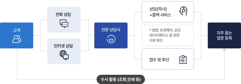 - 전화 전국 어디서나 1600-7004번으로 상담 가능(평일 9~18시 운영, 12~13시 제외)