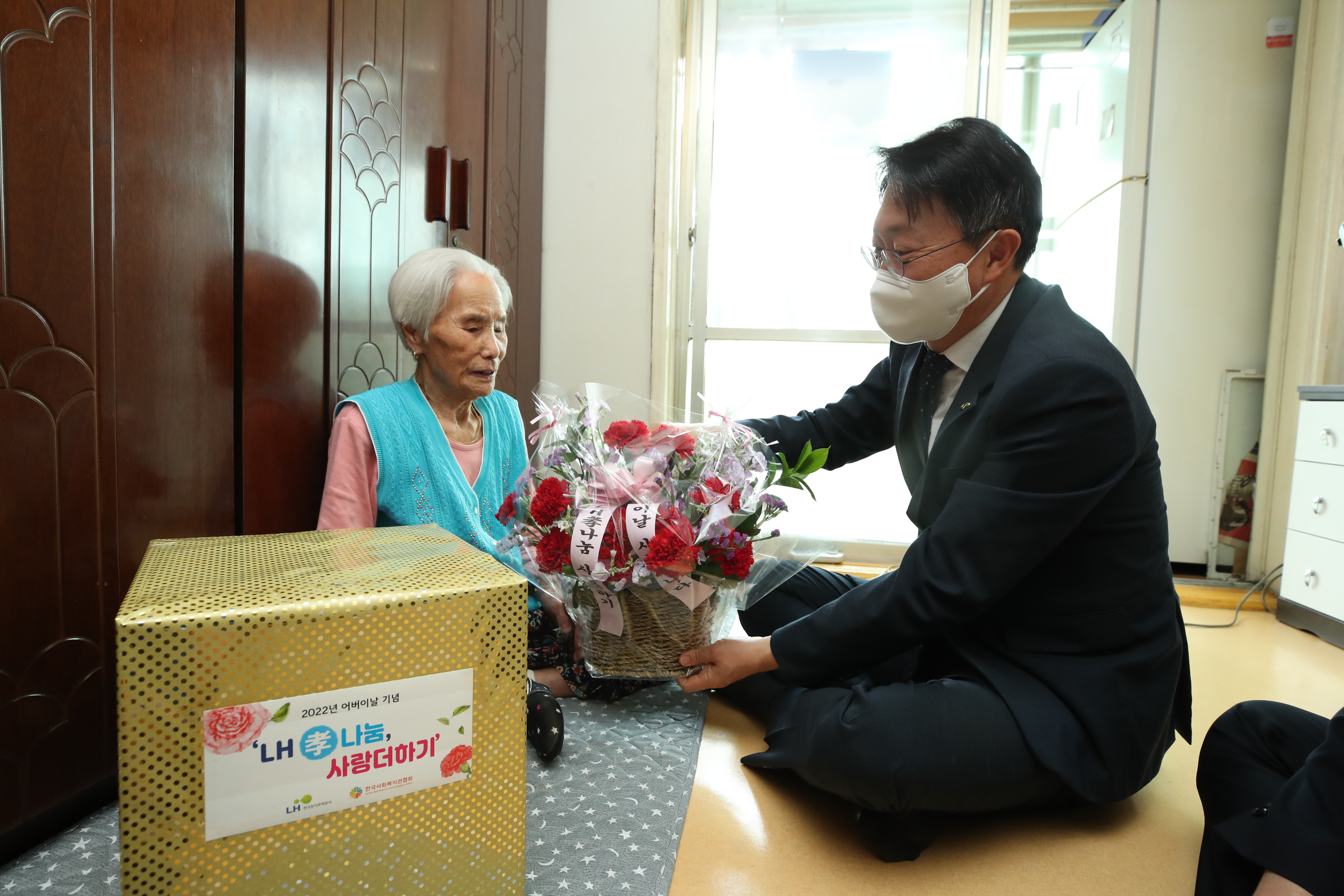 김현준 LH사장, 어버이날 맞아 임대주택 어르신에 꽃바구니 전달